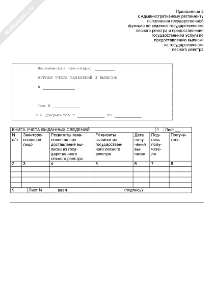 Журнал учета заявлений и выписок из государственного лесного реестра (рекомендуемый образец заполнения)