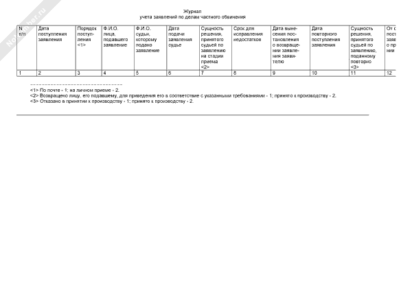 Журнал учета заявлений по делам частного обвинения. Форма № 5.1