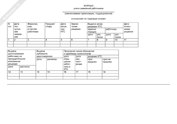 Журнал учета заявлений работников в комиссию по трудовым спорам