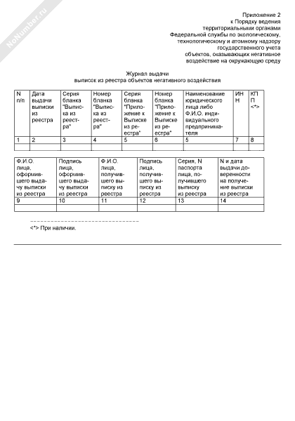 Журнал выдачи выписок из реестра объектов негативного воздействия