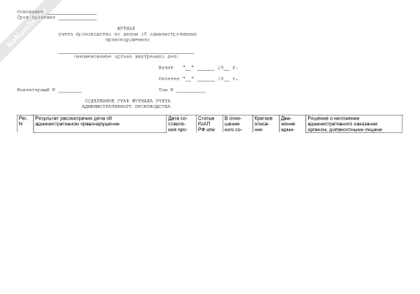 Журнал учета производства по делам об административных правонарушениях