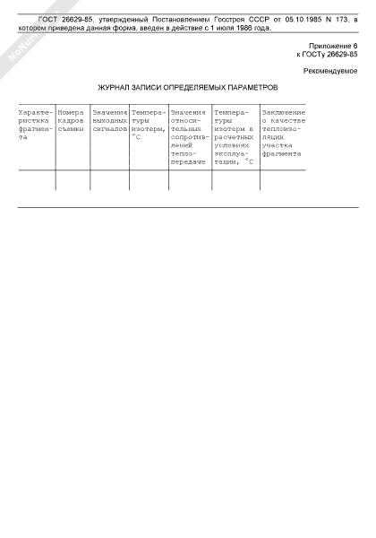 Журнал записи определяемых параметров тепловизионных измерений (рекомендуемая форма)
