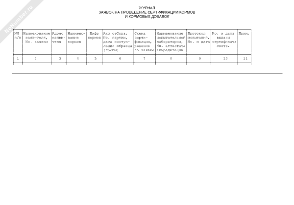 Журнал заявок на проведение сертификации кормов и кормовых добавок (форма № 1)